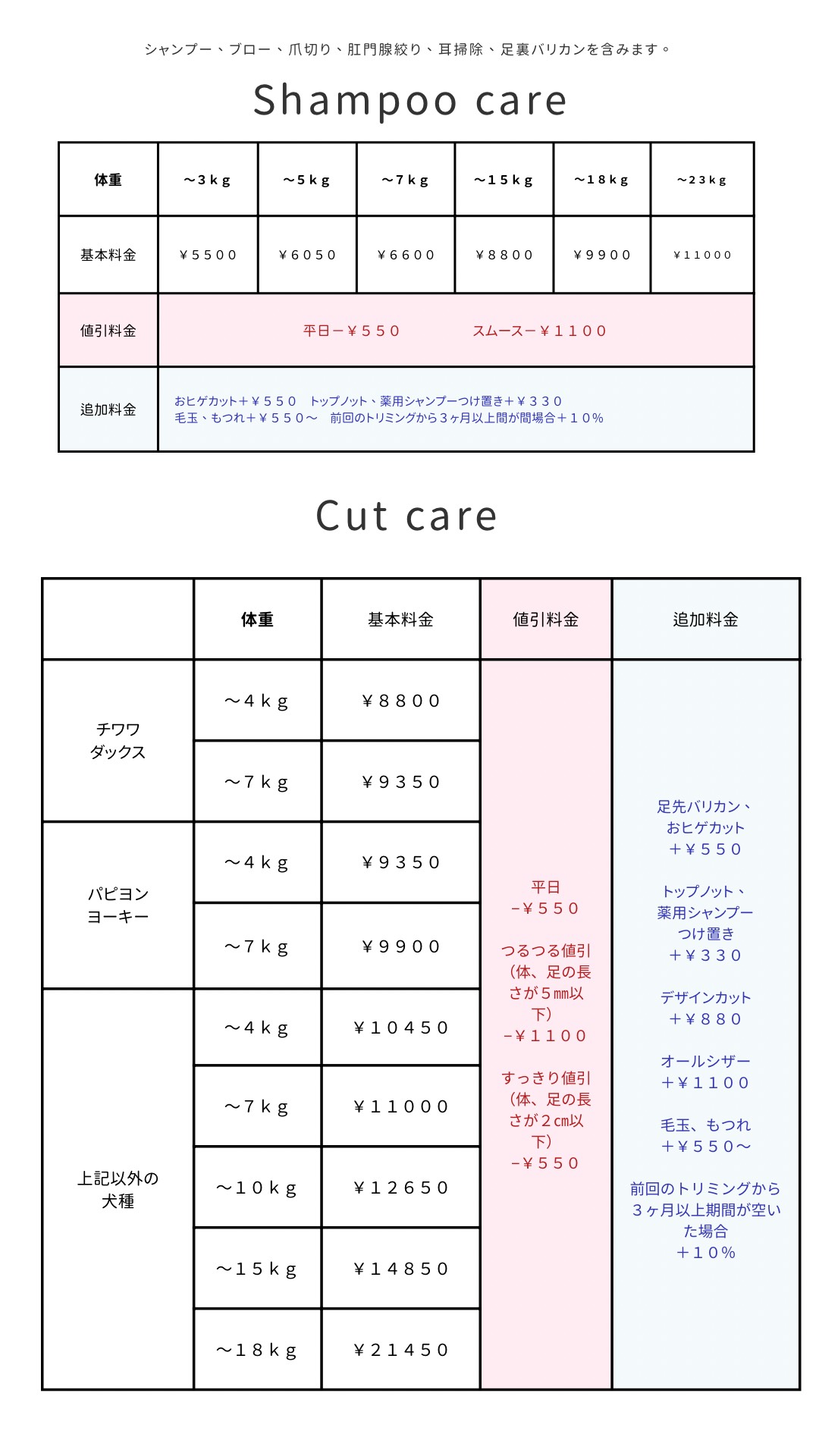 スタッフ全員が10年以上のトリマー歴があり、飼い主さんもわんちゃん、どちらも幸せになれるようなトリミングを心がけています。