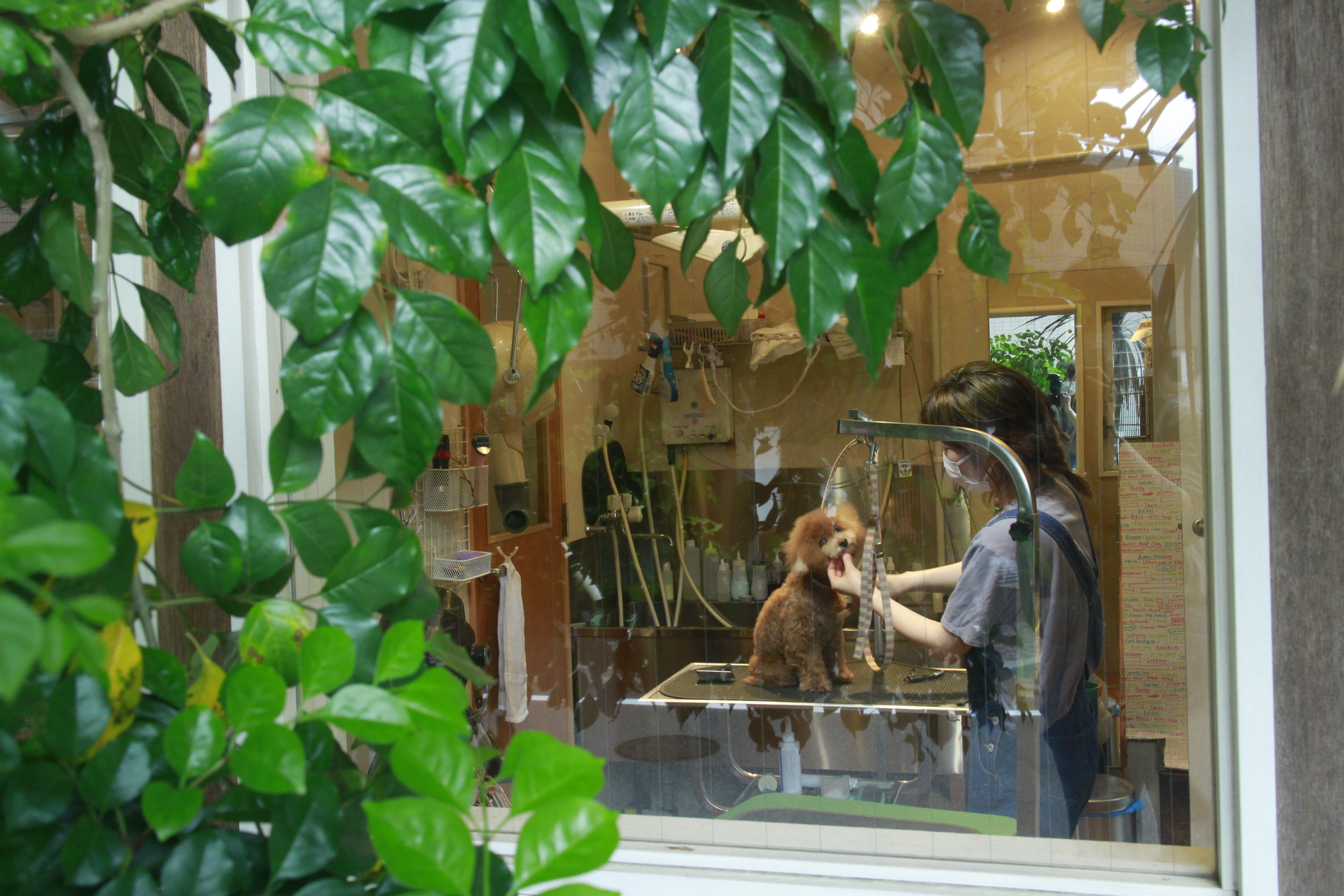 トリミングルームの外から様子が見えるようになっていますが見えすぎないよう工夫しています。